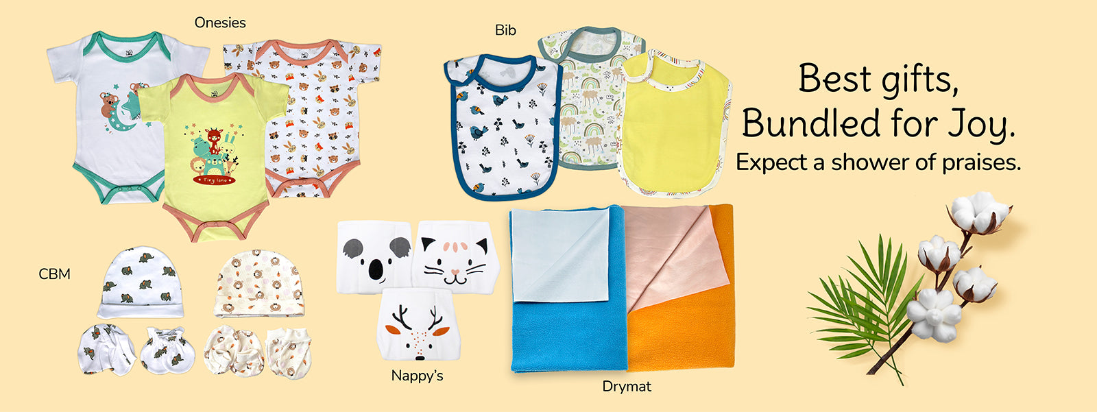 Sweetest of necessary indulgences and care. An extended set of love in the form of adorable baby apparel that is surely going to ease motherhood challenges in the first two years. Weaved with utmost attention to detail and highest of textile design standards, Jumbo Gift set is big at heart and packs a whole lot of range for the cherished little one. Never ever fall short, go Jumbo. A well deserving gift set for every new mother.
