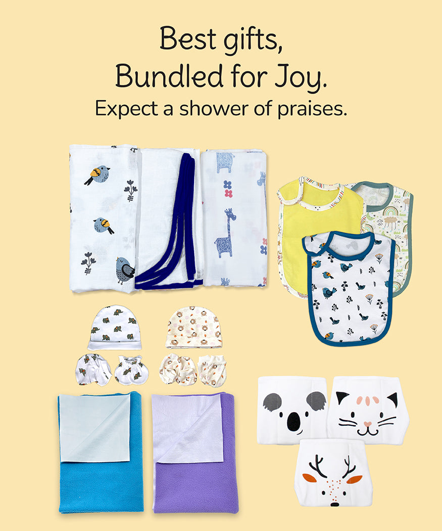 Sweetest of necessary indulgences and care. An extended set of love in the form of adorable baby apparel that is surely going to ease motherhood challenges in the first two years. Weaved with utmost attention to detail and highest of textile design standards, Jumbo Gift set is big at heart and packs a whole lot of range for the cherished little one. Never ever fall short, go Jumbo. A well deserving gift set for every new mother.