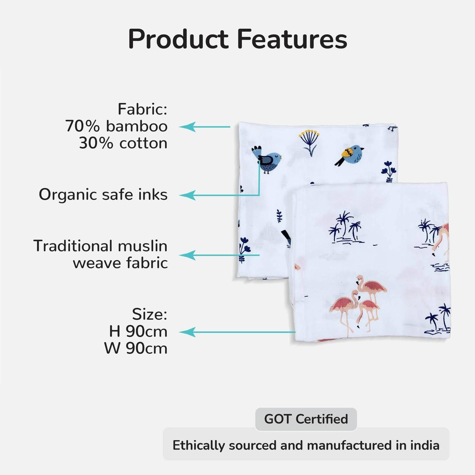 Fab Flamingo & Tweeting Bird Bamboo Swaddle Set | Pack Of 2 | 90 x 90 cm