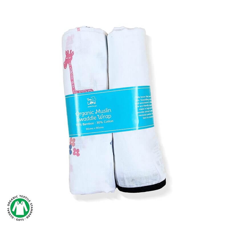 Lanky Giraffe & Classic White Baby Swaddle Set | Pack Of 2 | 90 x 90 cm