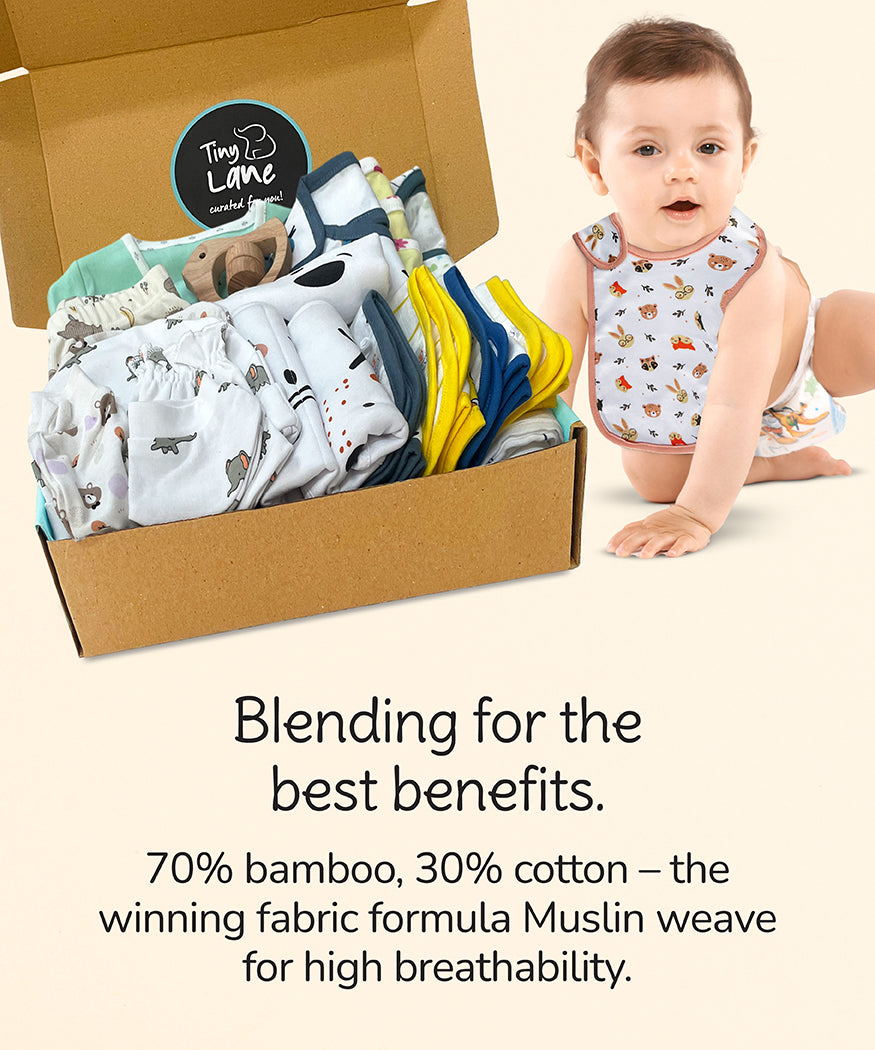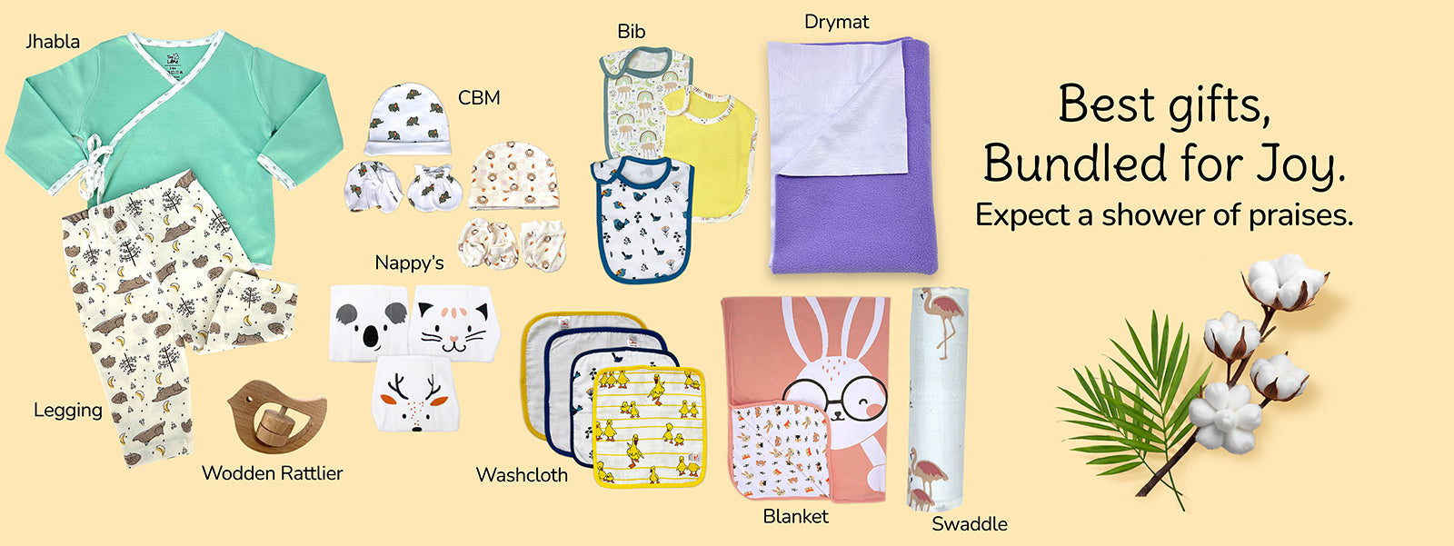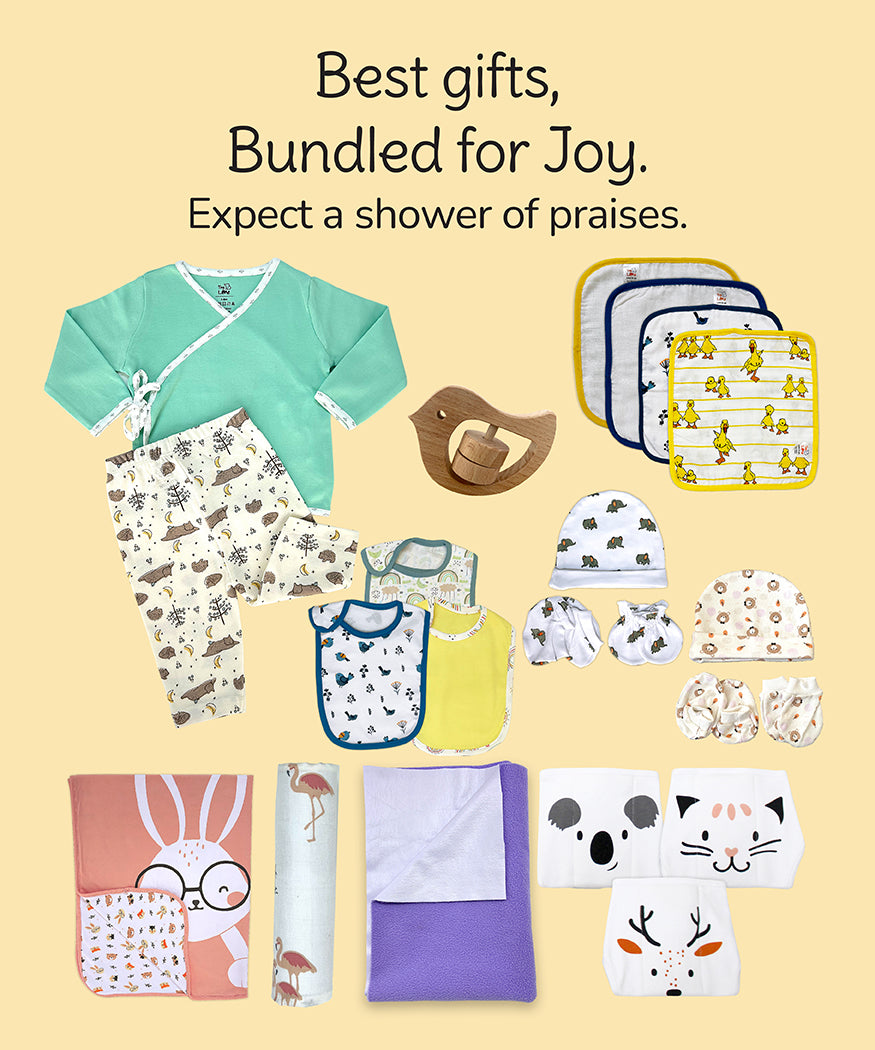 Sweetest of necessary indulgences and care. An extended set of love in the form of adorable baby apparel that is surely going to ease motherhood challenges in the first two years. Weaved with utmost attention to detail and highest of textile design standards, Jumbo Gift set is big at heart and packs a whole lot of range for the cherished little one. Never ever fall short, go Jumbo. A well deserving gift set for every new mother.