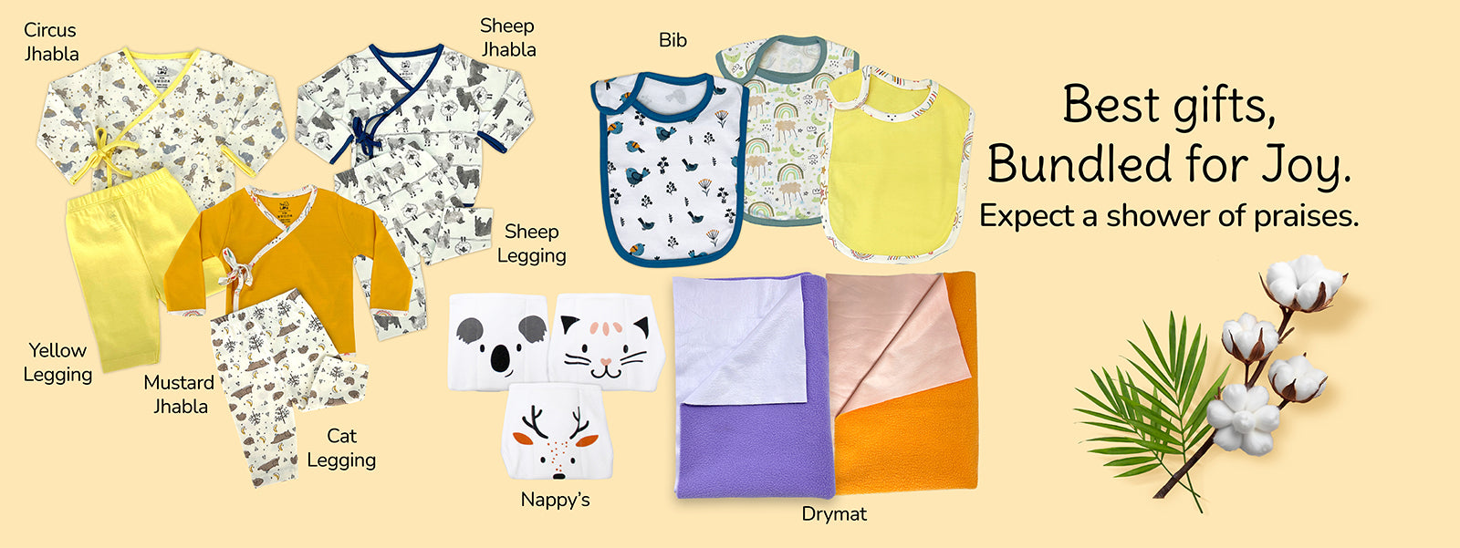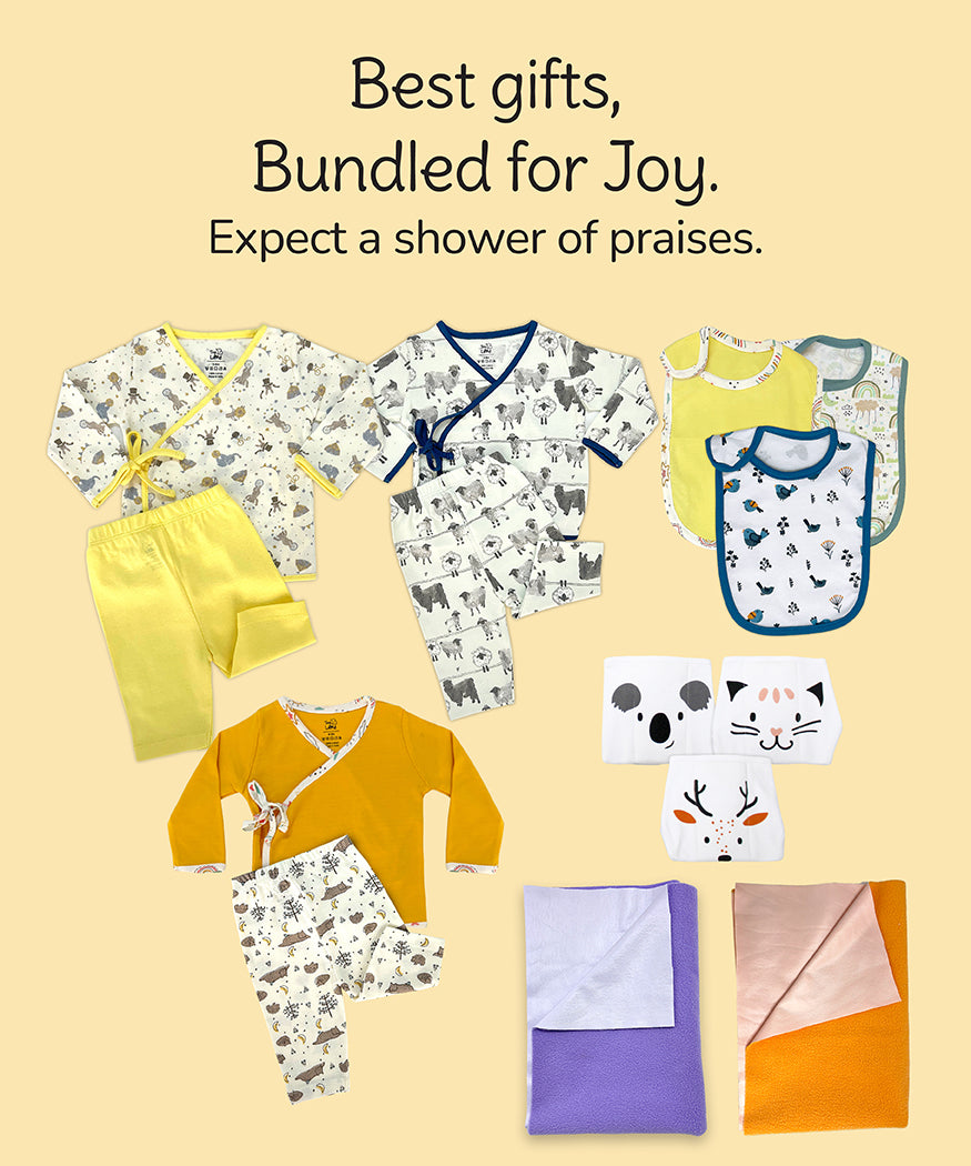Sweetest of necessary indulgences and care. An extended set of love in the form of adorable baby apparel that is surely going to ease motherhood challenges in the first two years. Weaved with utmost attention to detail and highest of textile design standards, Jumbo Gift set is big at heart and packs a whole lot of range for the cherished little one. Never ever fall short, go Jumbo. A well deserving gift set for every new mother.