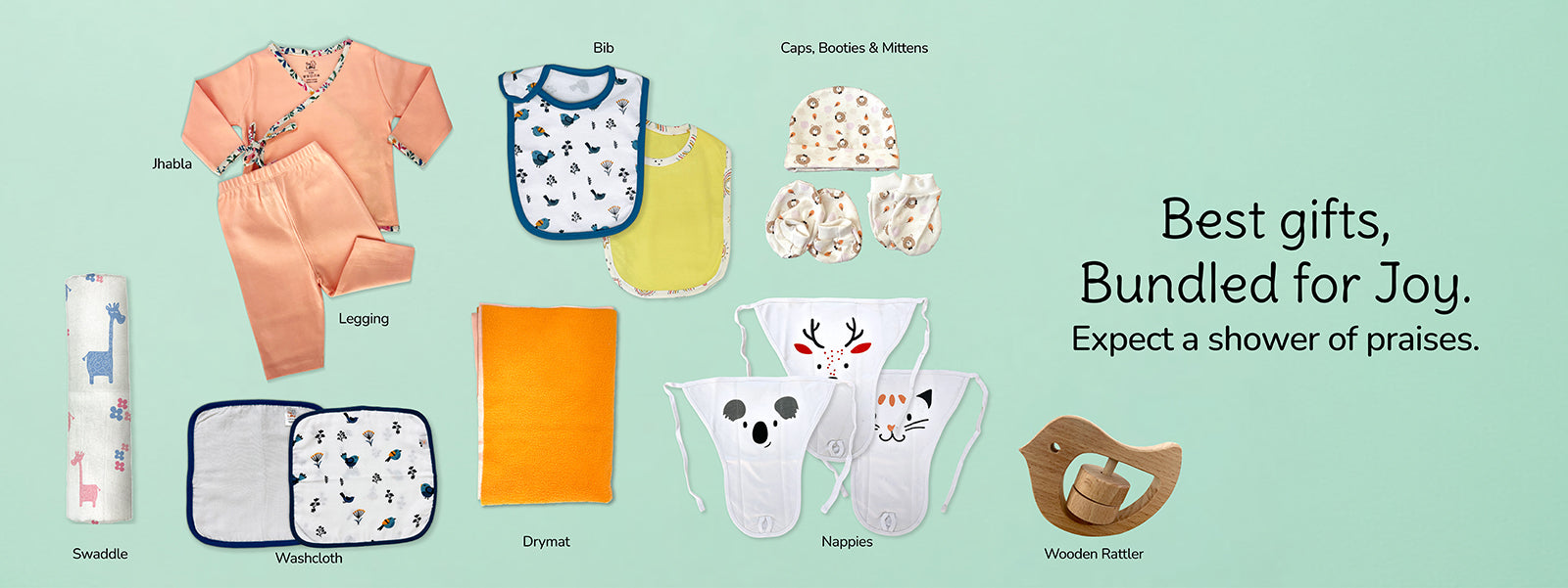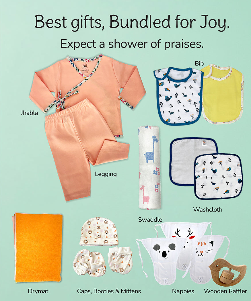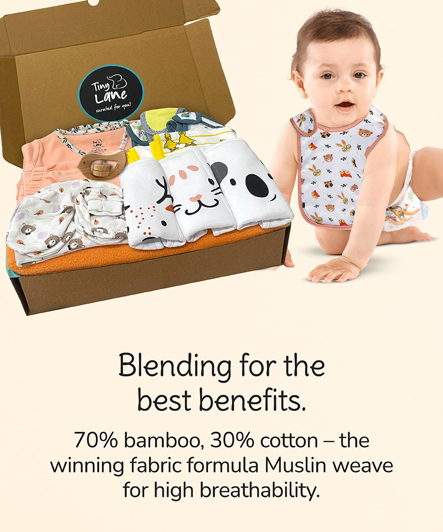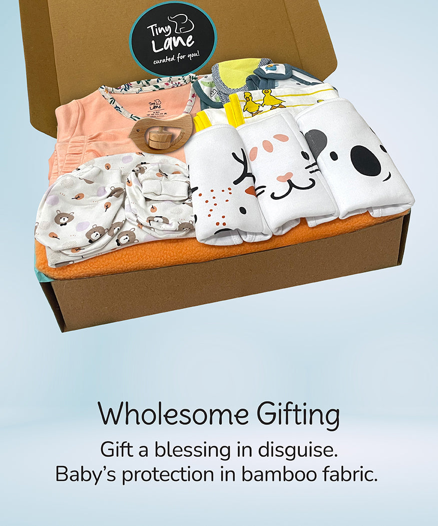 Shower your little one with love and essentials with Tiny Lane's JUMBO GIFT PACK, a treasure trove of 15 must-have baby goodies!