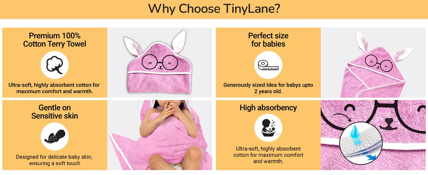 - Premium 100% Cotton Terry Fabric: Made from ultra-soft and highly absorbent cotton terry, this towel provides unmatched comfort and warmth for newborns and toddlers.