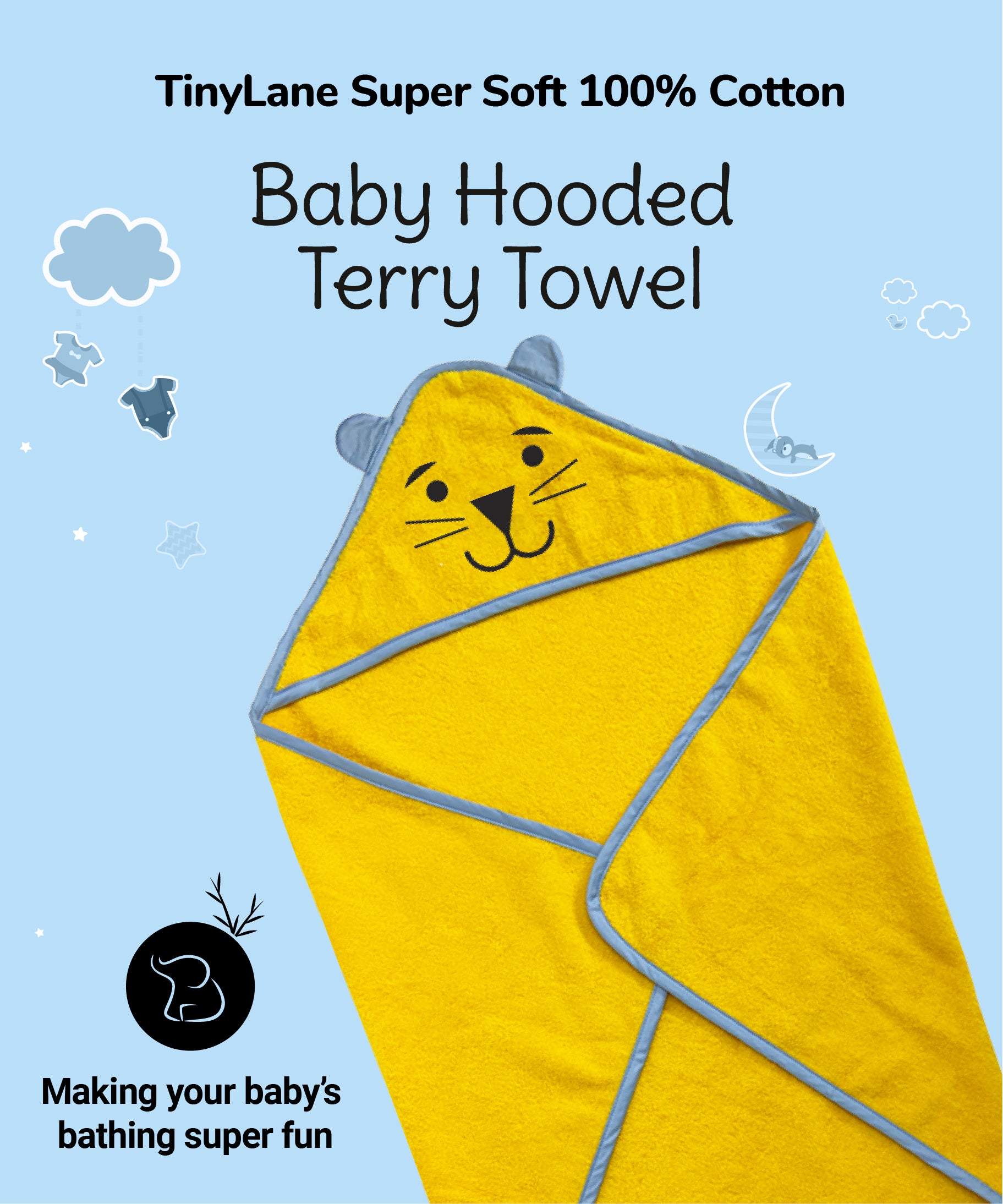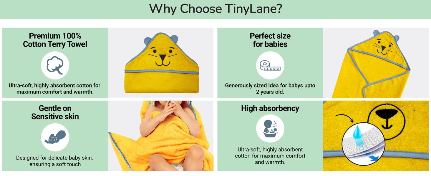 Make bath time a delightful and comfortable experience with the Yellow Bear TinyLane Hooded Baby Towel! 🛁🐻💛